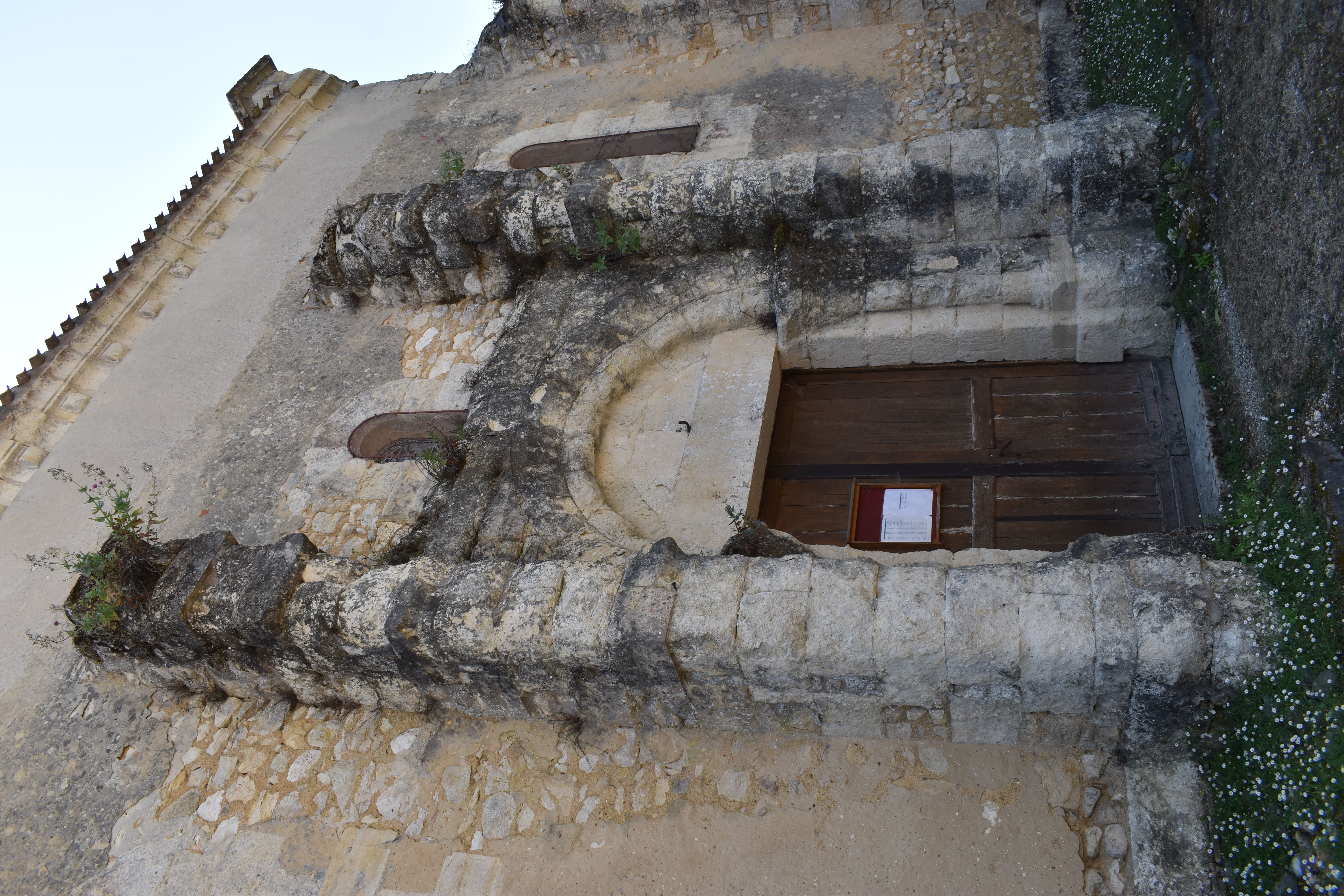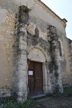 La porte principale s’ouvre sur la nef, au nord. Dotée d’un tympan sans décor, elle est encadrée par deux colonnettes couronnées de chapiteaux.