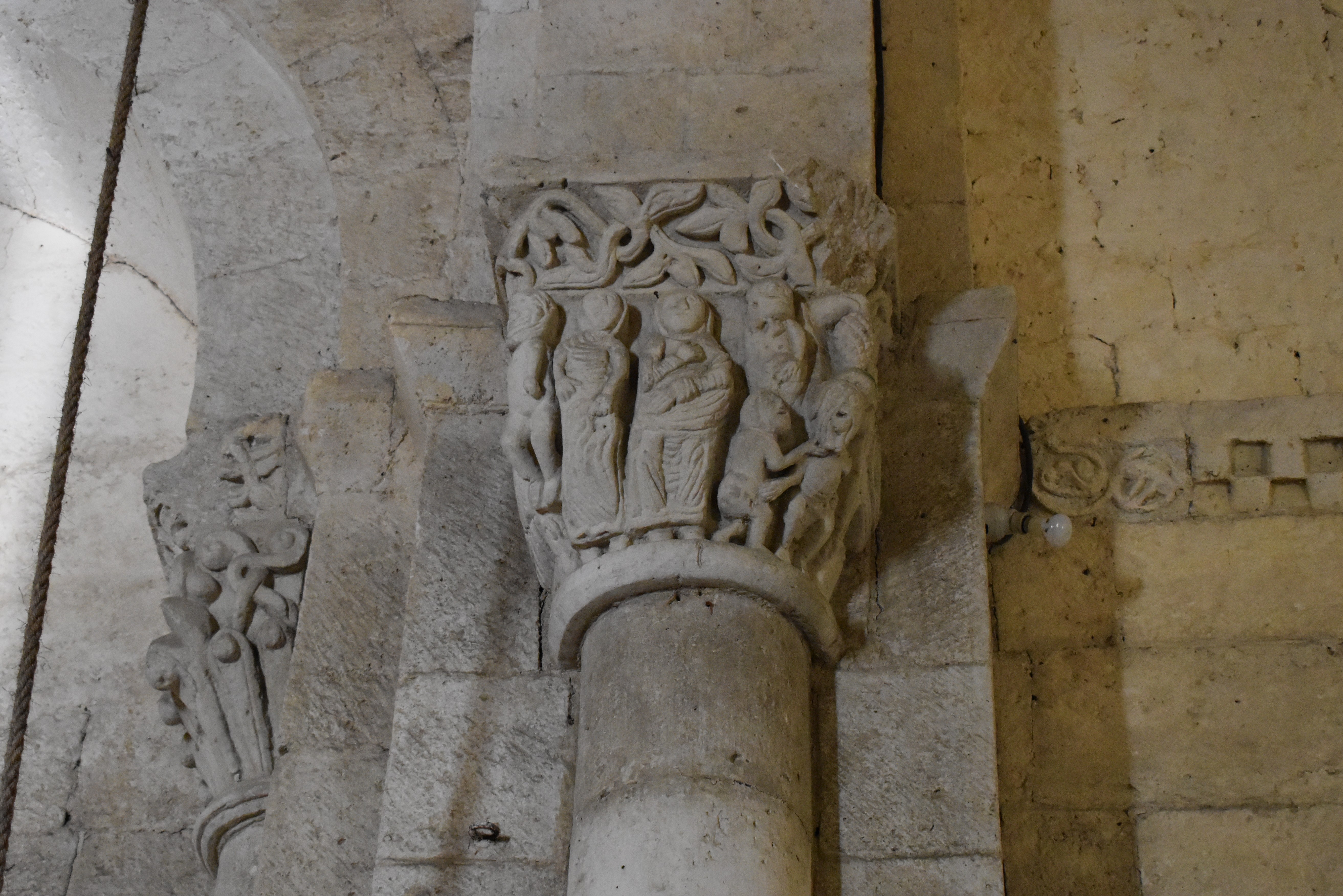 L’église contient des chapiteaux de belle facture. Ils présentent des scènes historiées, quelques figures animales ou des rangs de feuilles et de volutes.