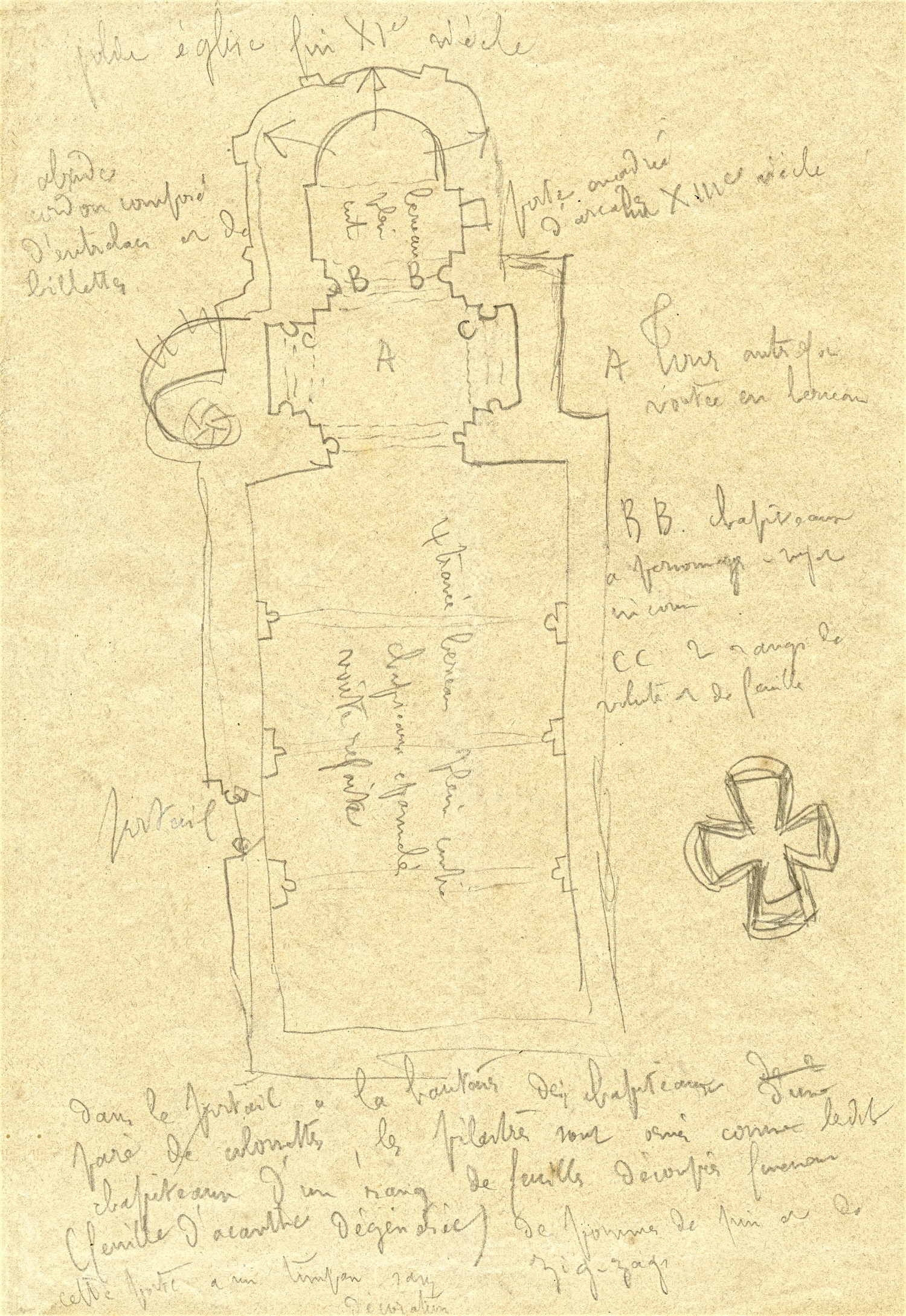Une tourelle adossée à la face nord contient un escalier à vis conduisant au clocher carré.