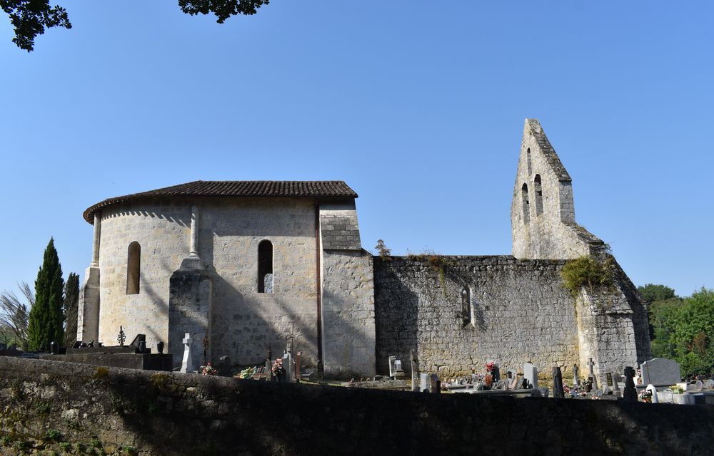 L’église date du 11ème ou du 12ème siècle mais la nef et le clocher-mur ont été rebâtis au 14ème.