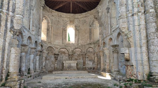 L’église contient une nef unique relativement courte, une abside semi-circulaire et un clocher-mur. Elle apparaît éventrée, la voûte de la nef ayant disparu et celle du chœur a été remplacée par une toiture.